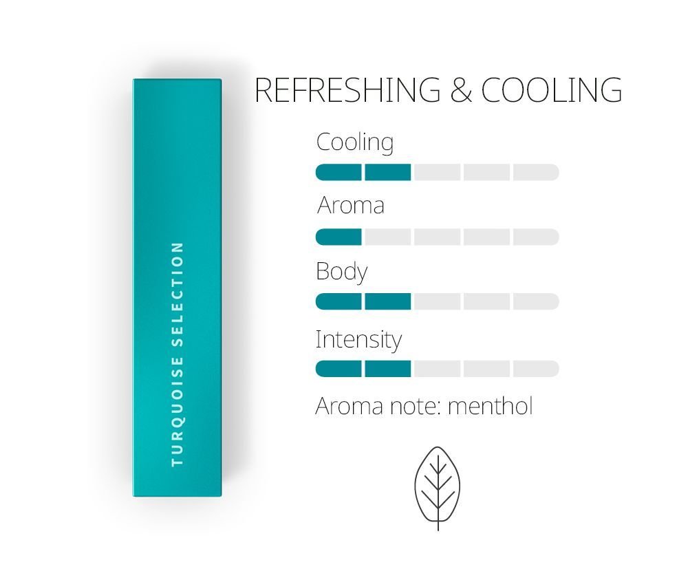 Turquoise Selection: are tobacco sticks with a pleasant fresh flavour delight you with their subtle spicy notes, giving you a refreshing sense of sophistication.